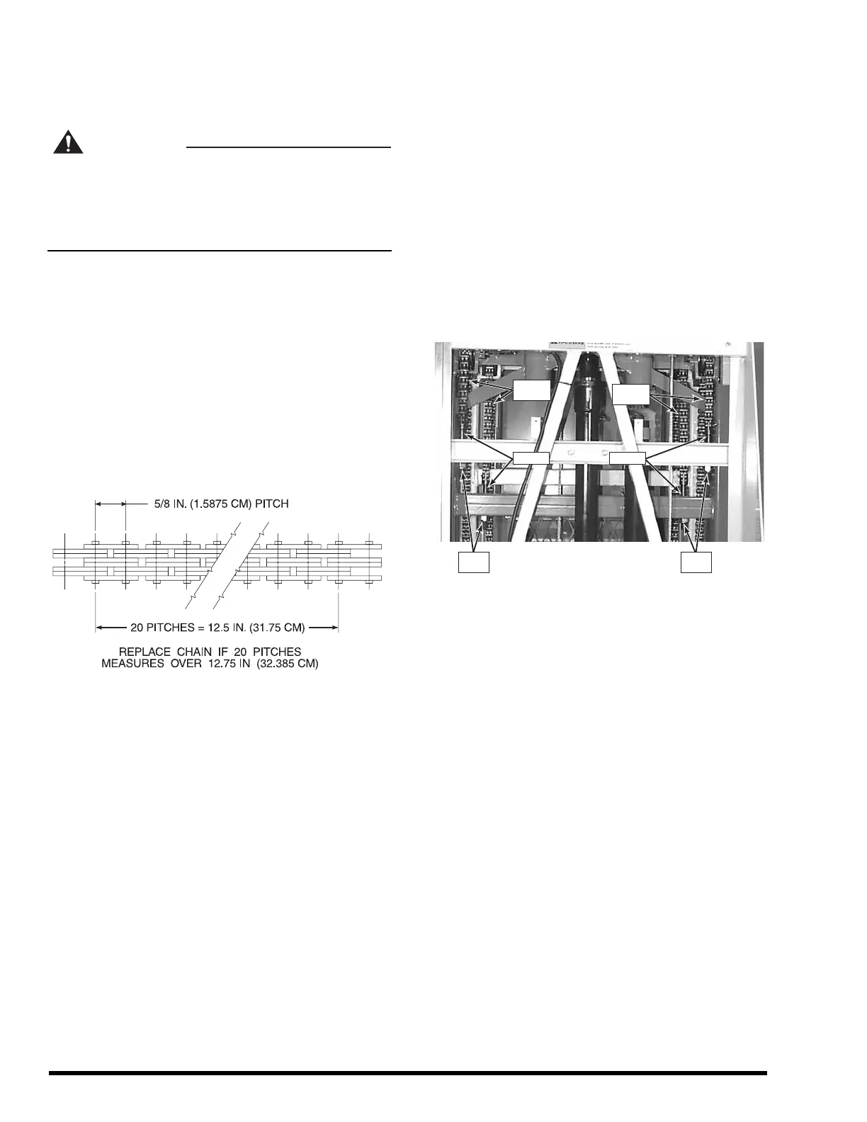 in. (31.75 cm). Replace the chain if a 20-pitch length