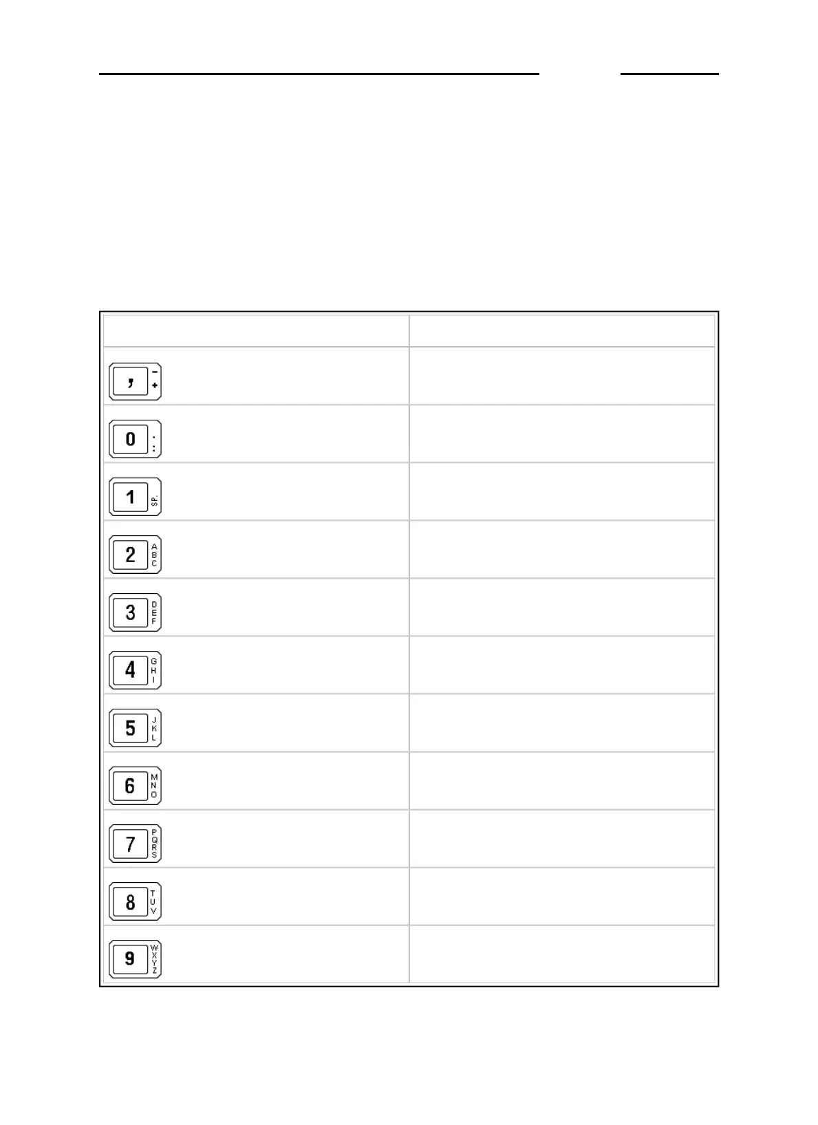 Below is a list of the characters associated with each key: