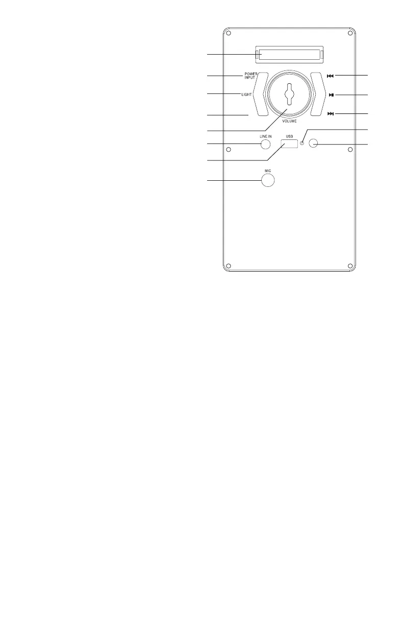3. PLAY/PAUSE: to play or pause the music. During FM state, long press PLAY/