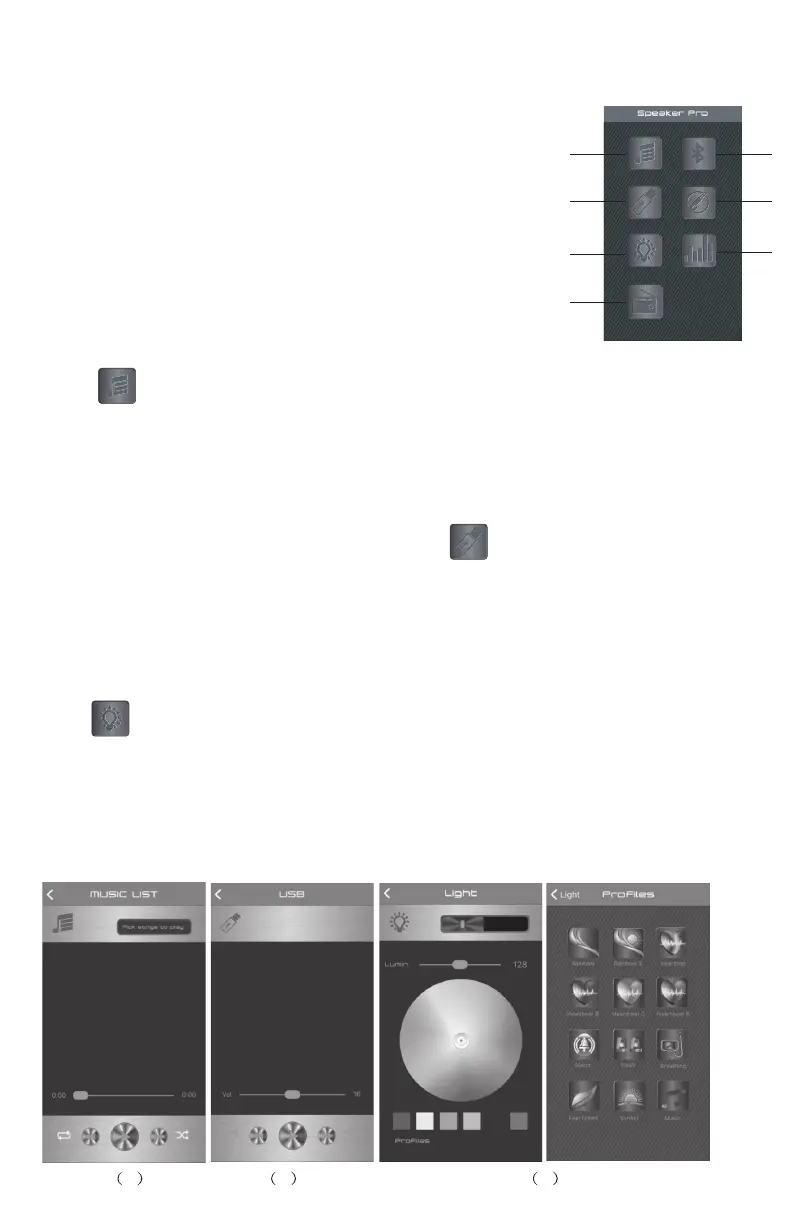Press “Proles” to enter into Light Eect mode page, you can choose from a
