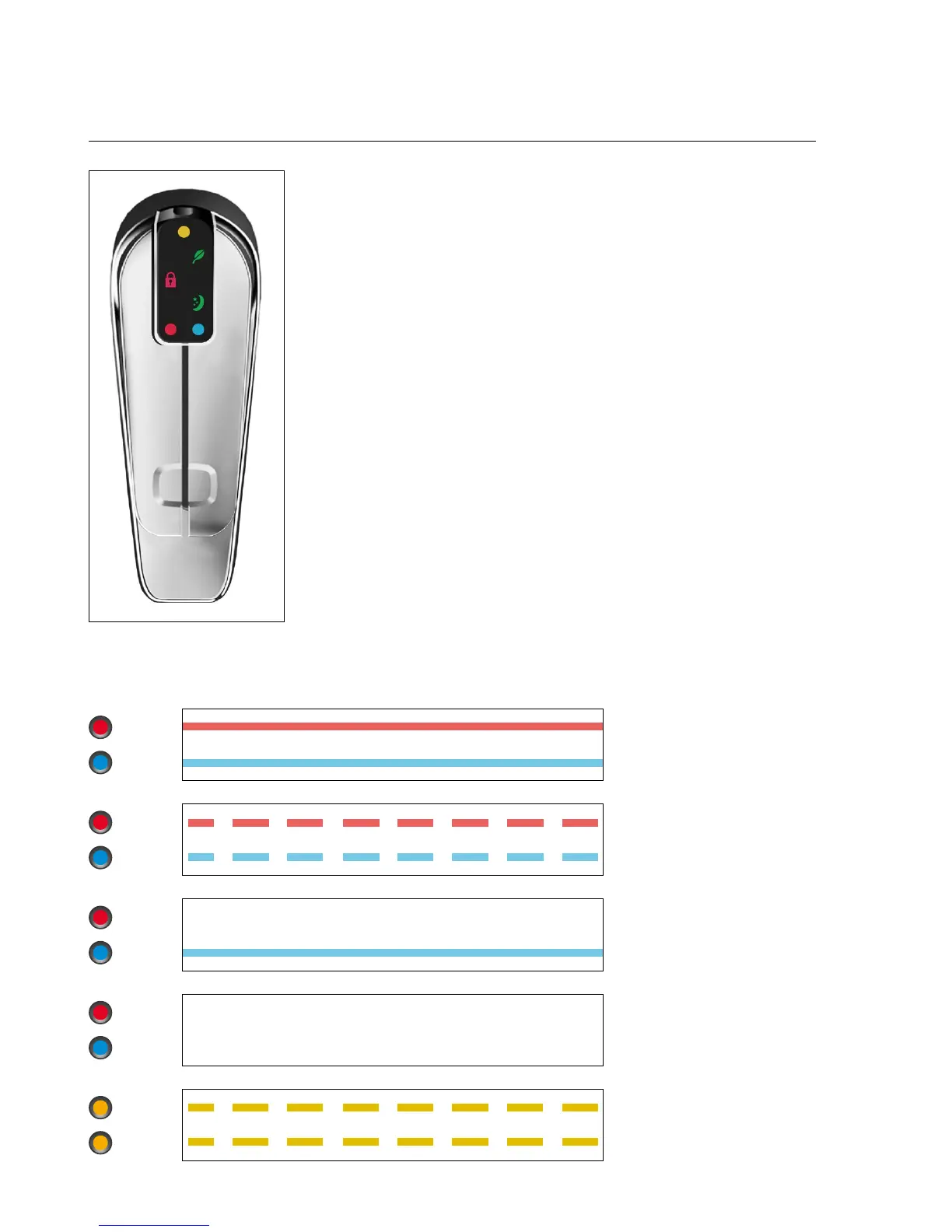O when in holiday or standby mode. Red & blue dots will