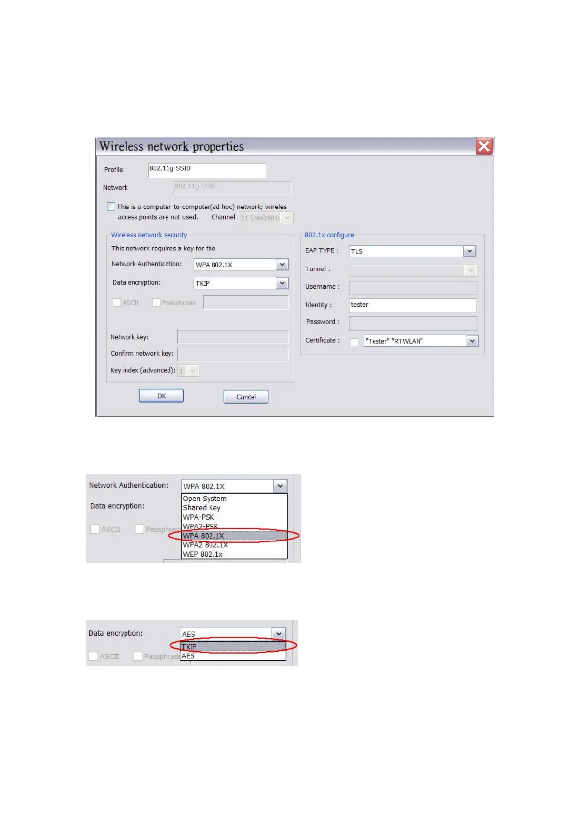 Step 1 : Set Network Authentication mode to WPA 802.1x ,or WPA2 802.1x