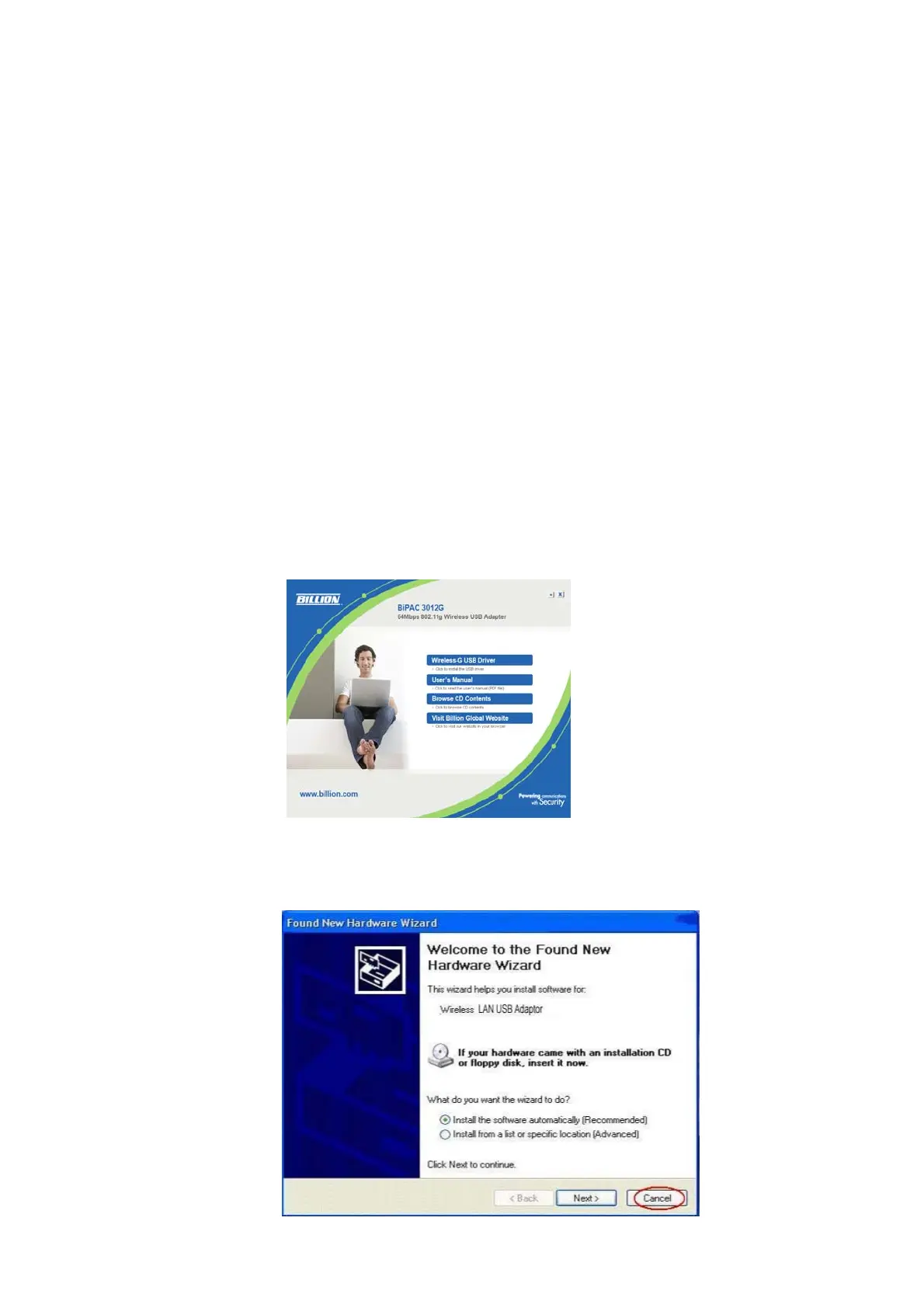 installing the software program from the CD, then auto installation window pops up