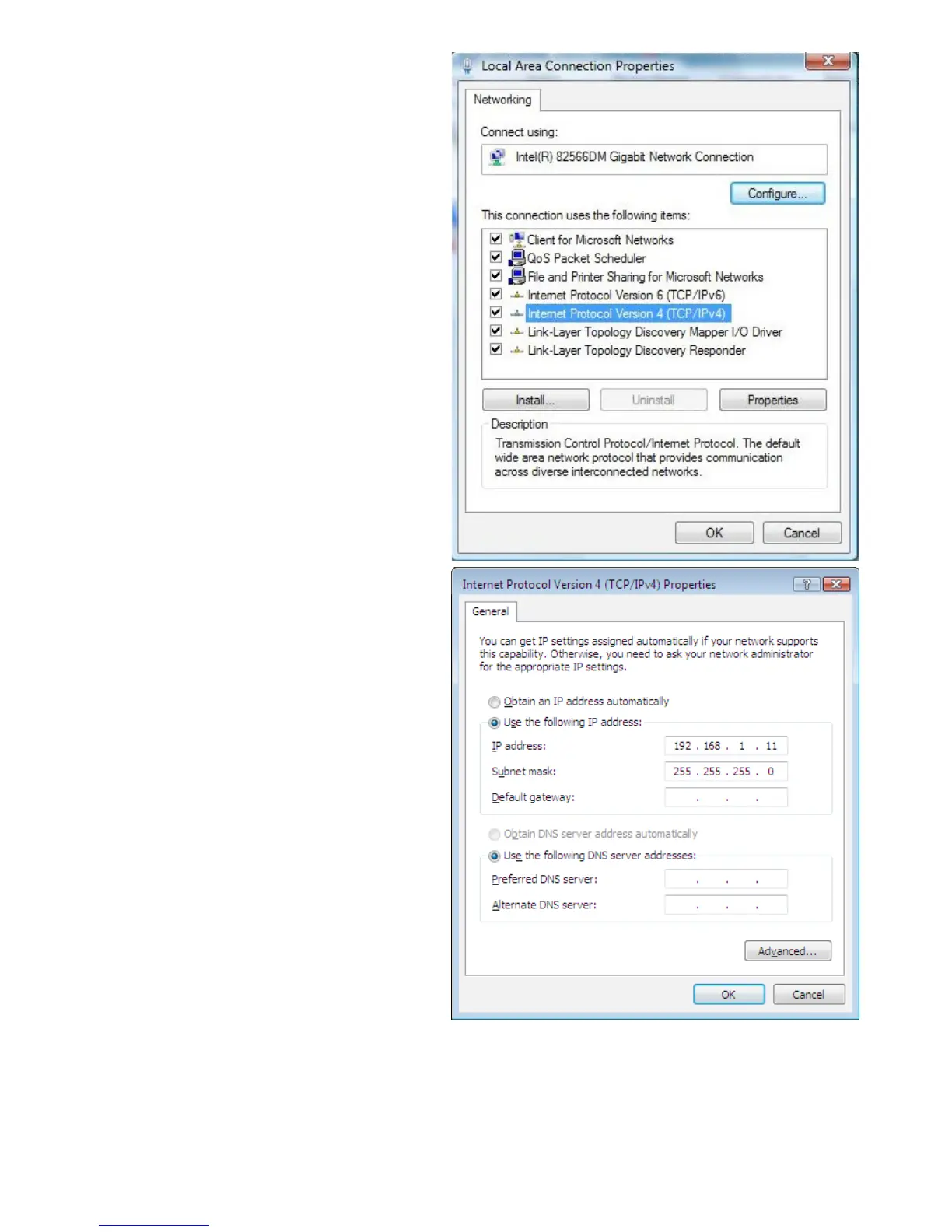 6. In the TCP/IPv4 properties window,