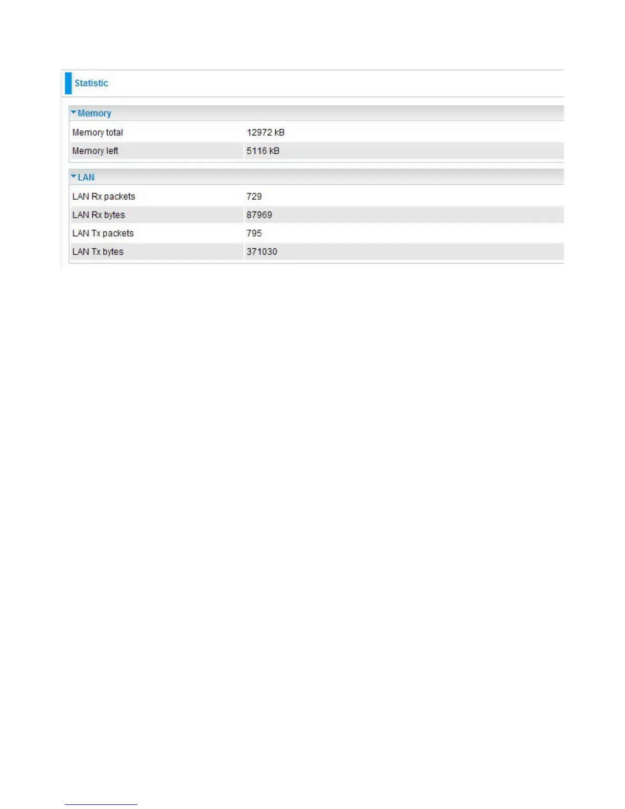 LAN Tx bytes: Displays the transfered packet trafc (in bytes)