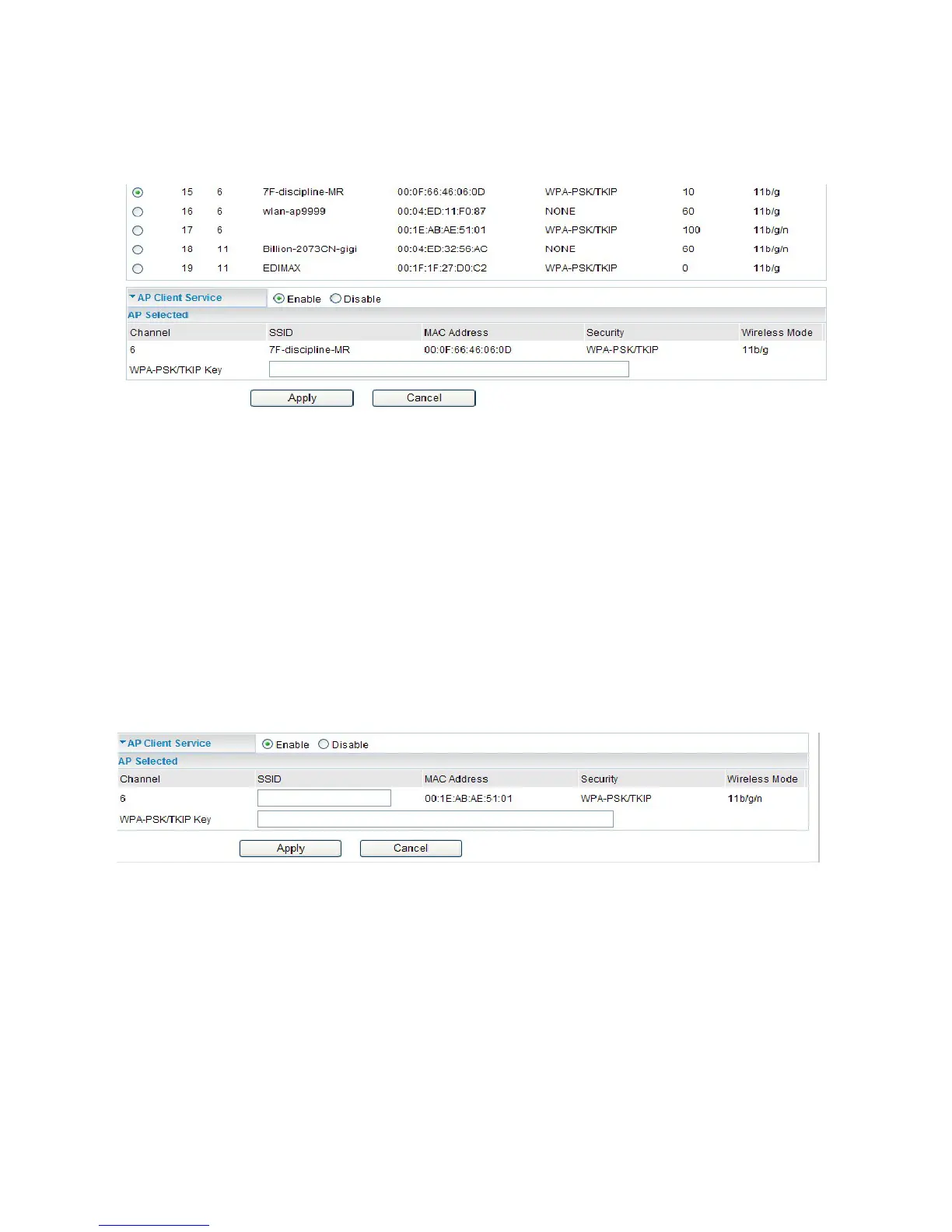 • Step 1: Click the “AP Selection” radio button to select the specied AP you want to connect.