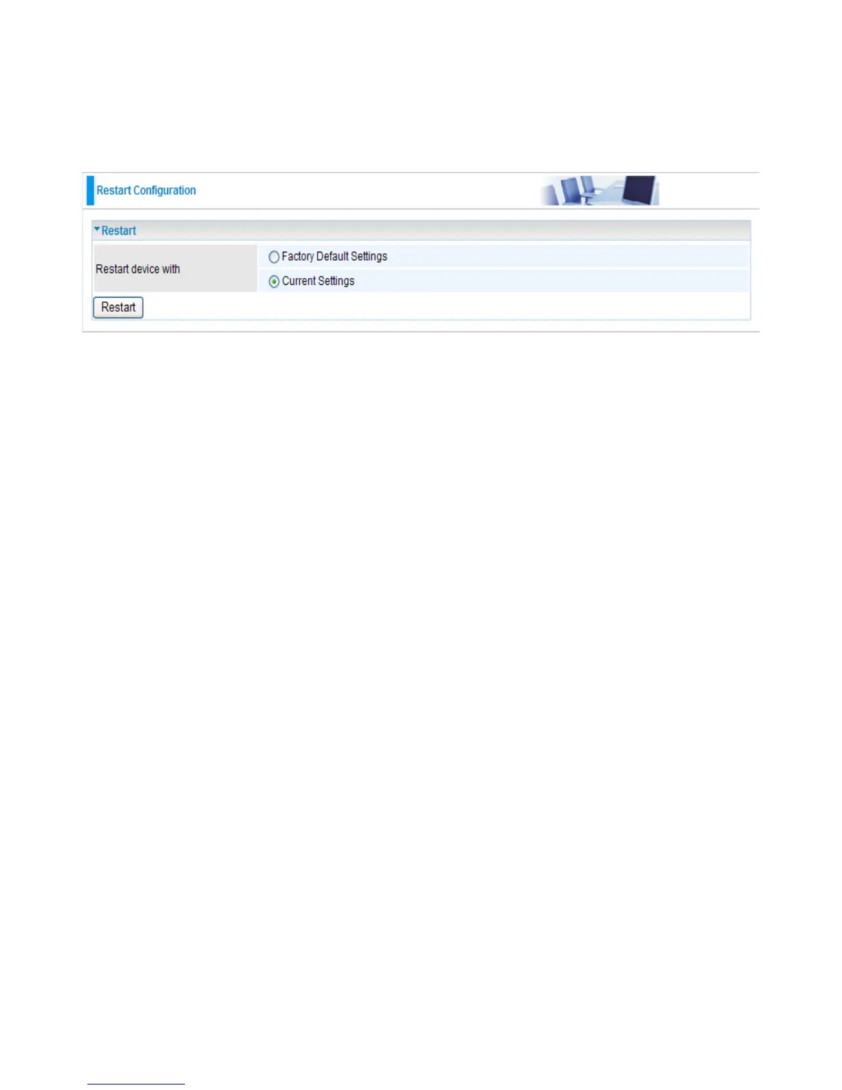 restart. Click the Restart button to restart your device. The system will automatically reload Status
