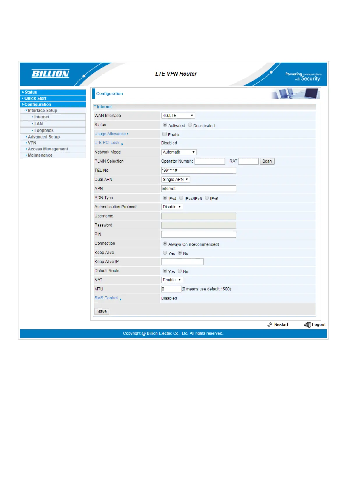 Here are the features under Interface Setup: Internet, LAN and Loopback.