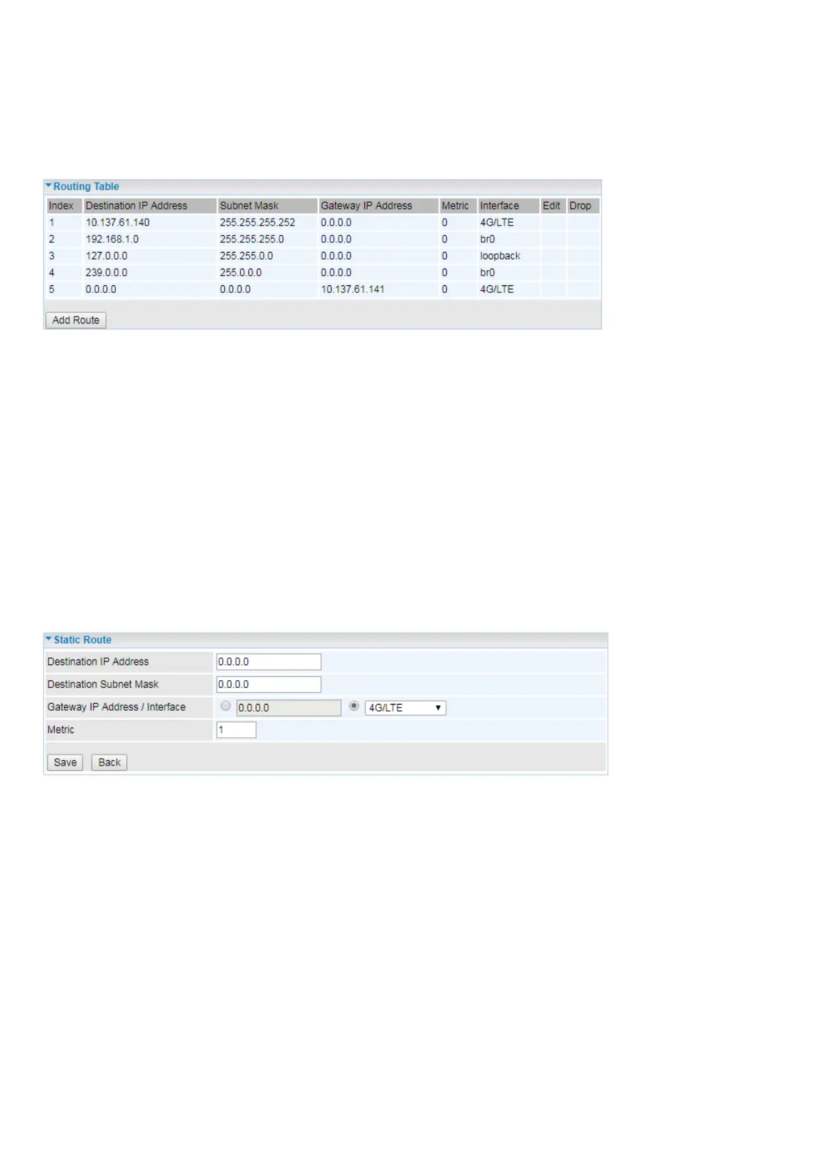Gateway IP Address: IP address of the gateway or existing interface that this route uses.