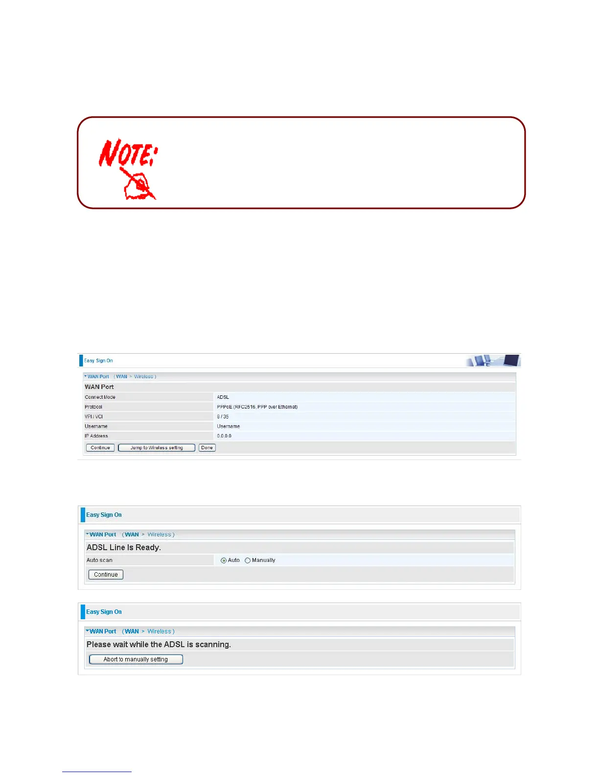 2. Choose “Auto” or “Manually” to scan ADSL information.