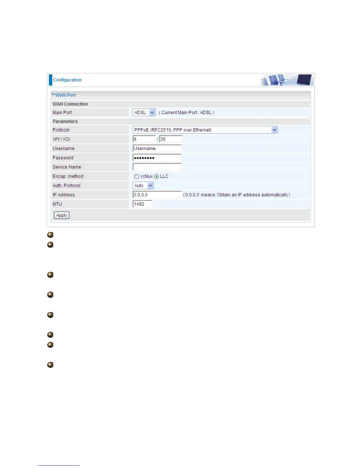 Encap. method: Select the encapsulation format, the default is LLC. Select the one