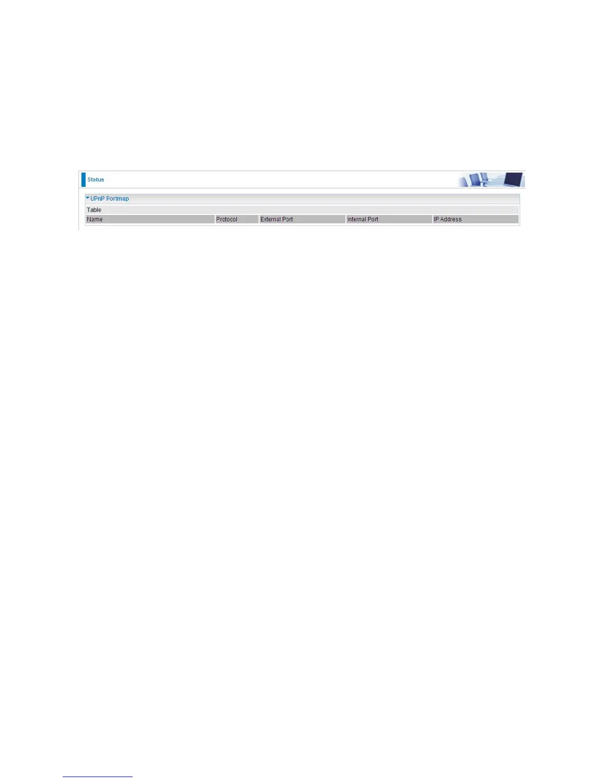 The section lists all port-mapping established using UPnP (Universal Plug and Play). Please