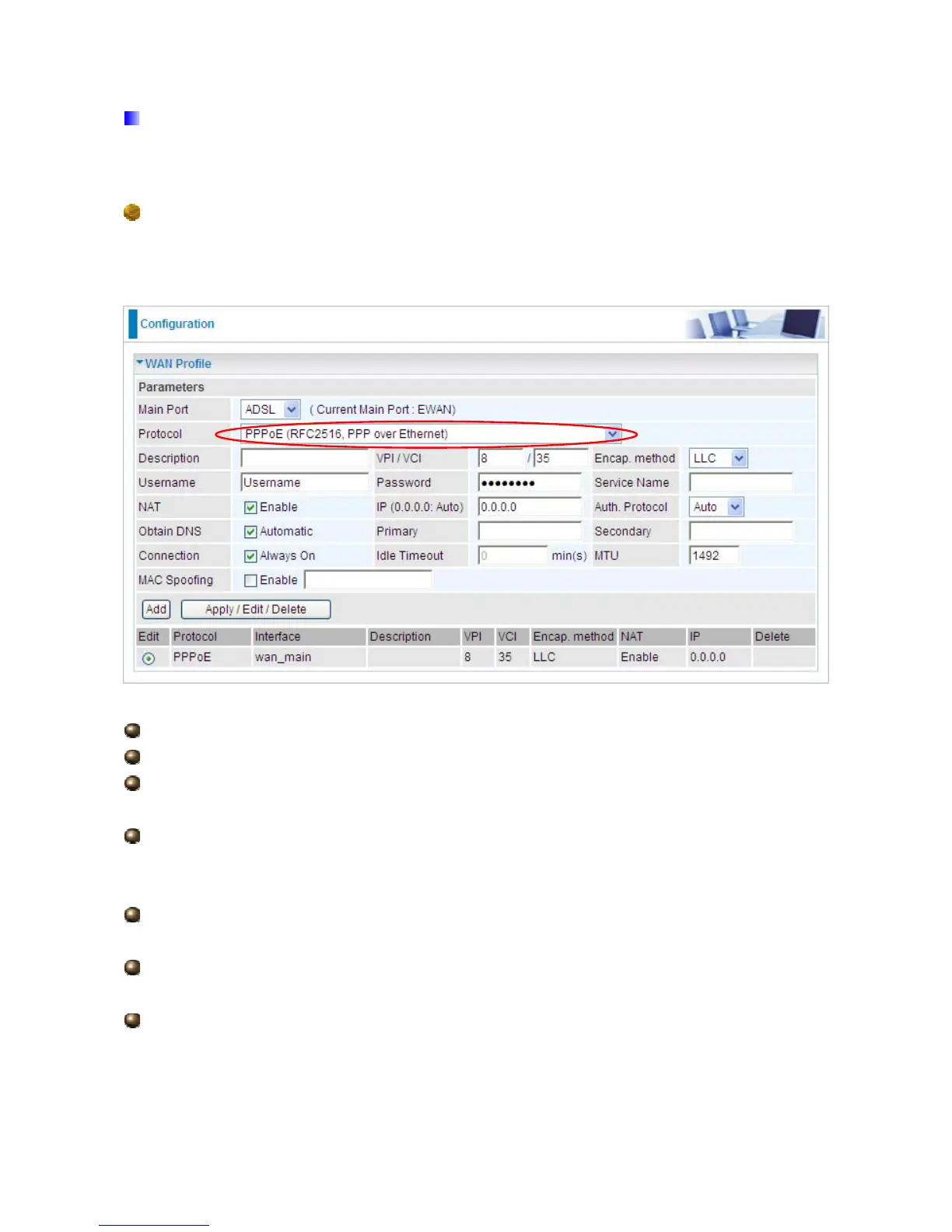 Encap. method: Select the encapsulation format, the default is LLC. Select the one