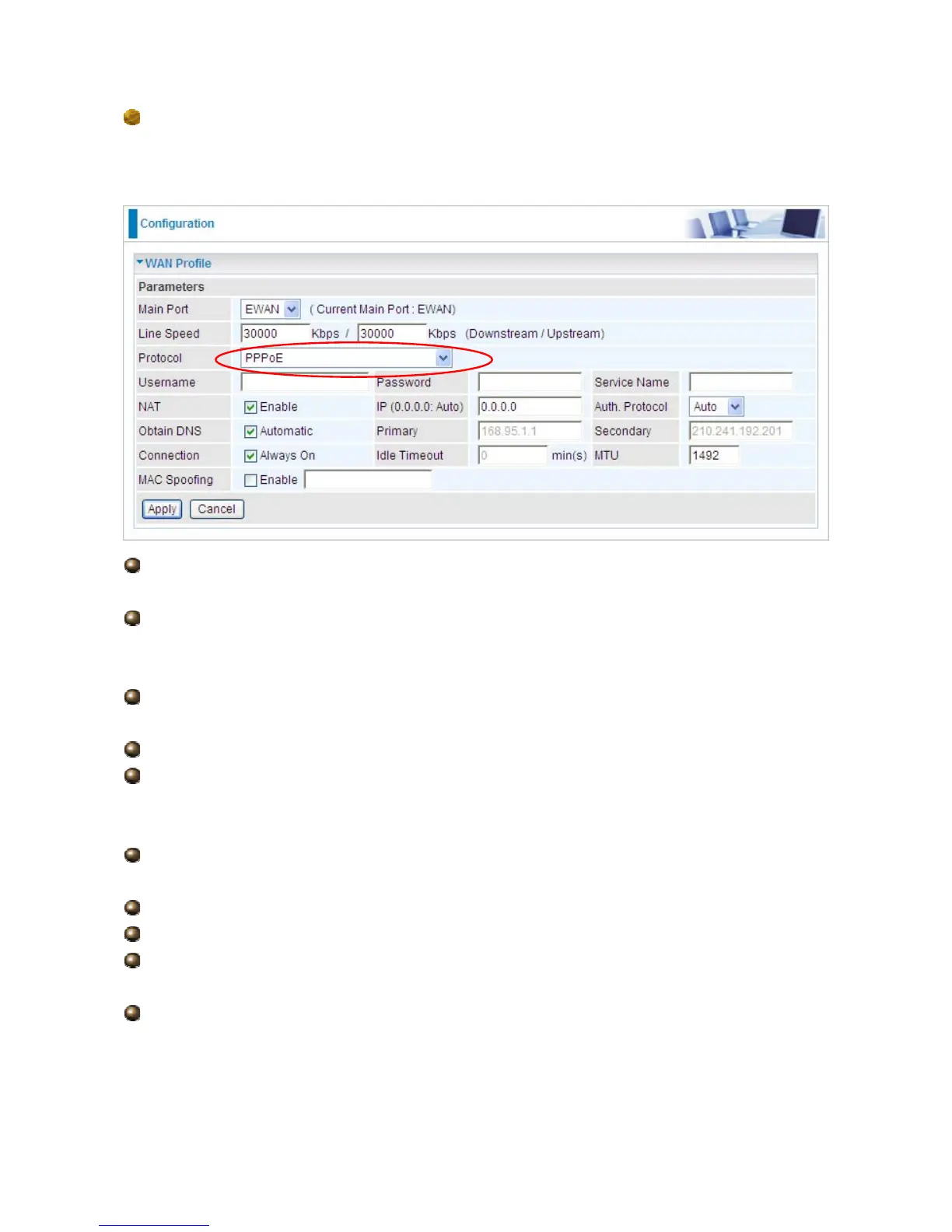 Auth. Protocol: Default is Auto. Your ISP advises on using Chap or Pap.