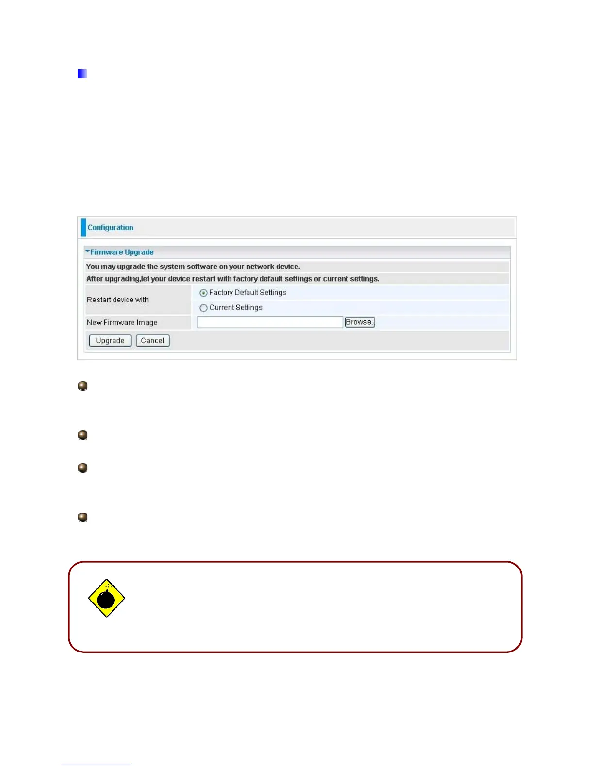 New Firmware Image: Type in the location of the file you wish to upload in this field or