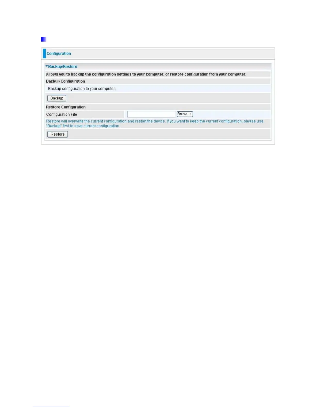 Press Browse… to select a file from your PC to restore. You should only restore settings