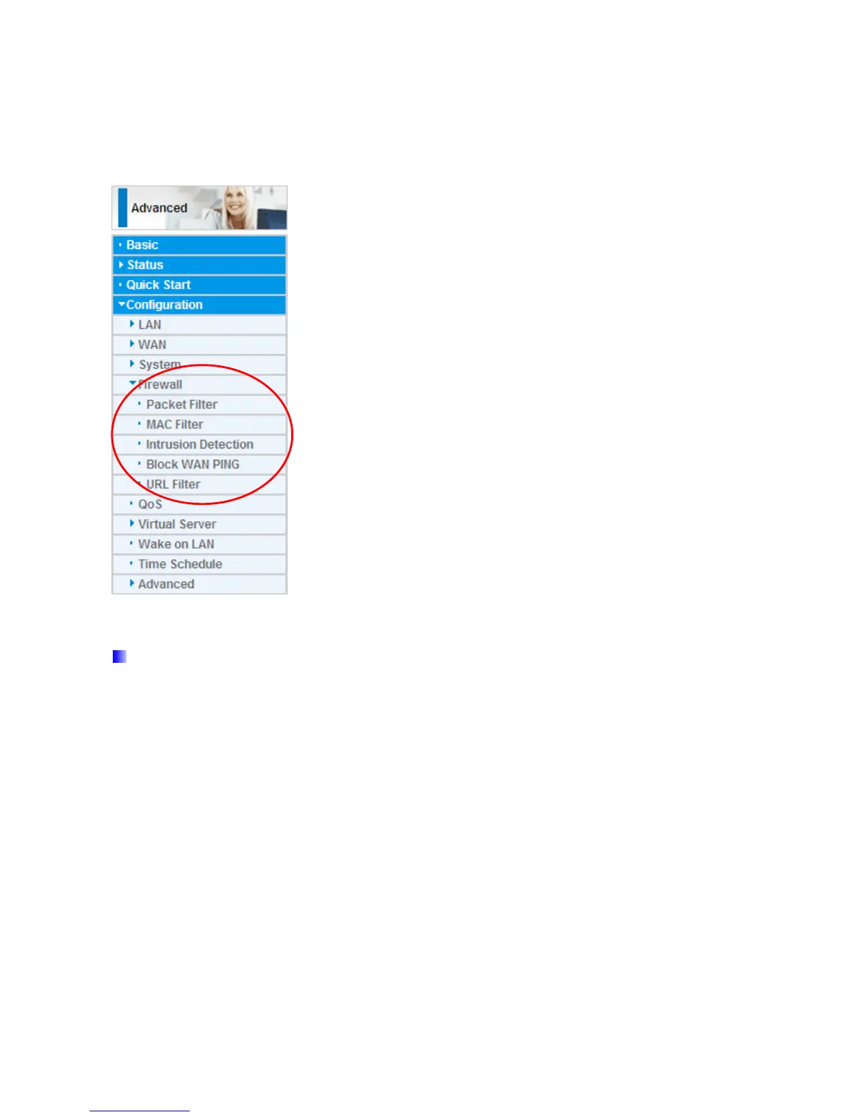 below: Packet Filter, MAC Address Filter, Intrusion detection, Block WAN PING and