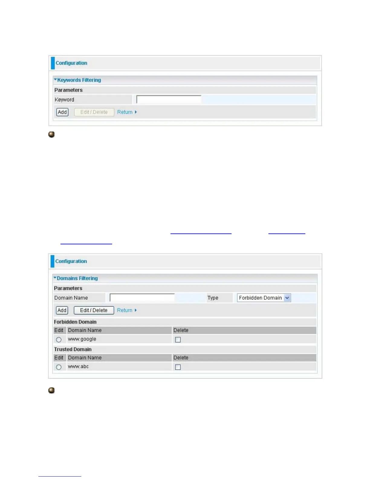 Domains Filtering: Checks the domain name in URLs accessed against your list of