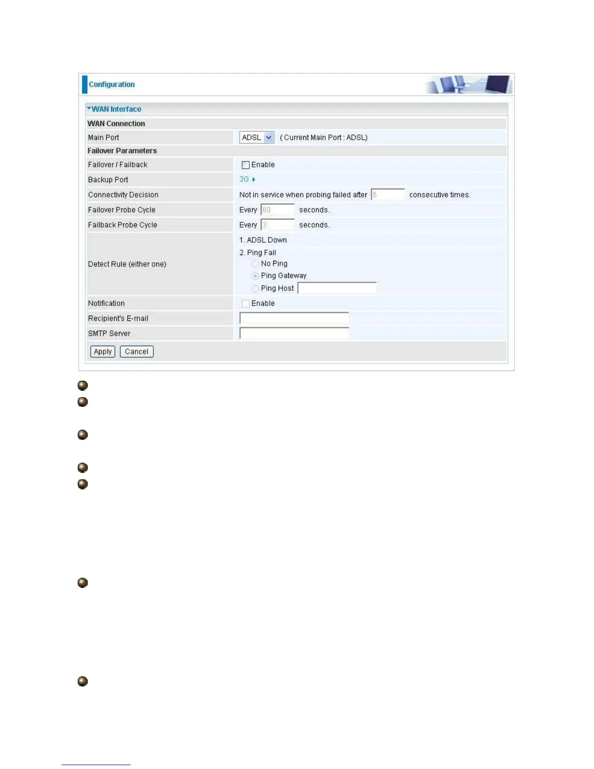 Failover / Failback: Set Enable to trigger ADSL / 3G failover / failback function ready.
