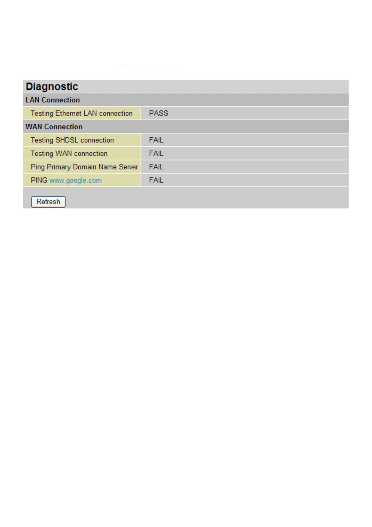connection as well. If PING www.google.com is shown FAIL and the rest is PASS, you ought to