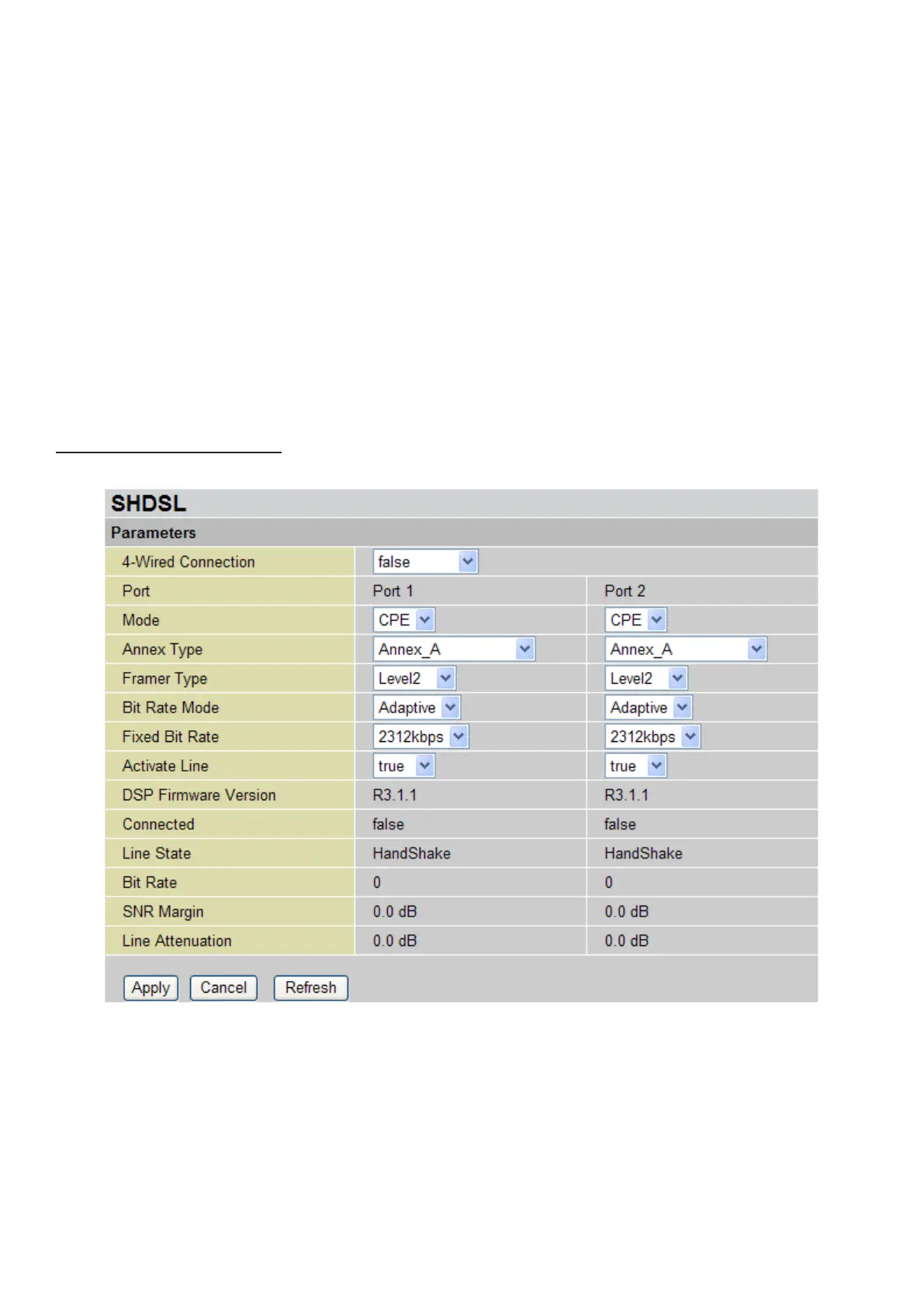 DSP Firmware Version: Displays the SHDSL line code rmware version.
