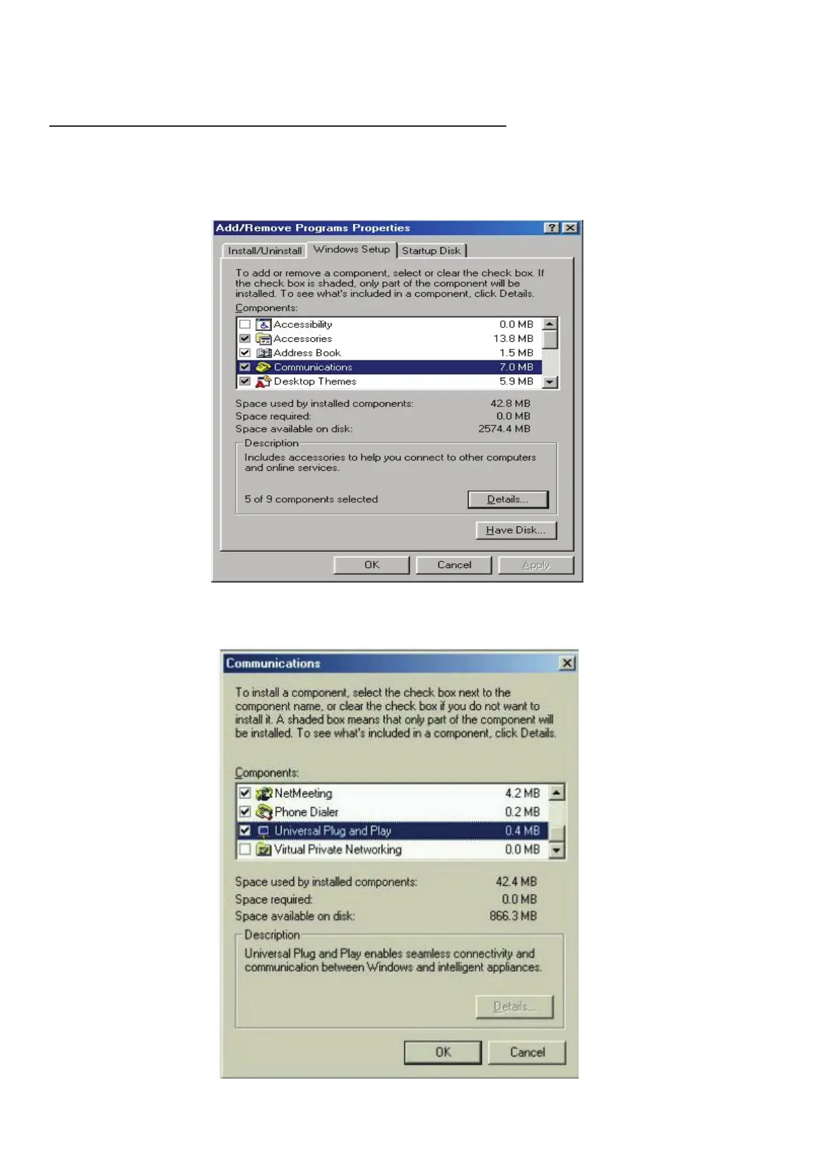 Step 2: Click on the Windows Setup tab and select Communication in the Components selection