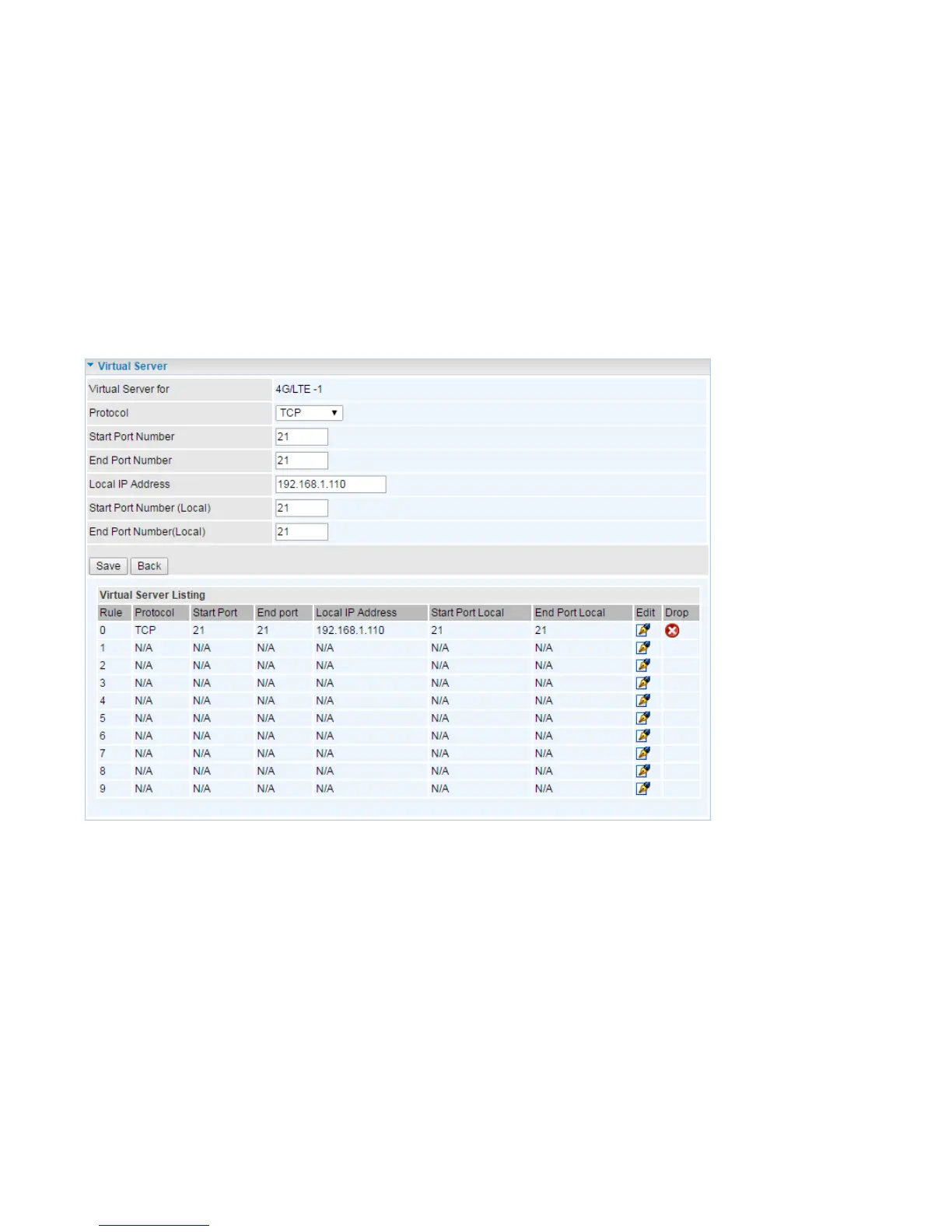Enter ”21” to Local Start and End Port number. M100 will forward port 21 request from WAN to the
