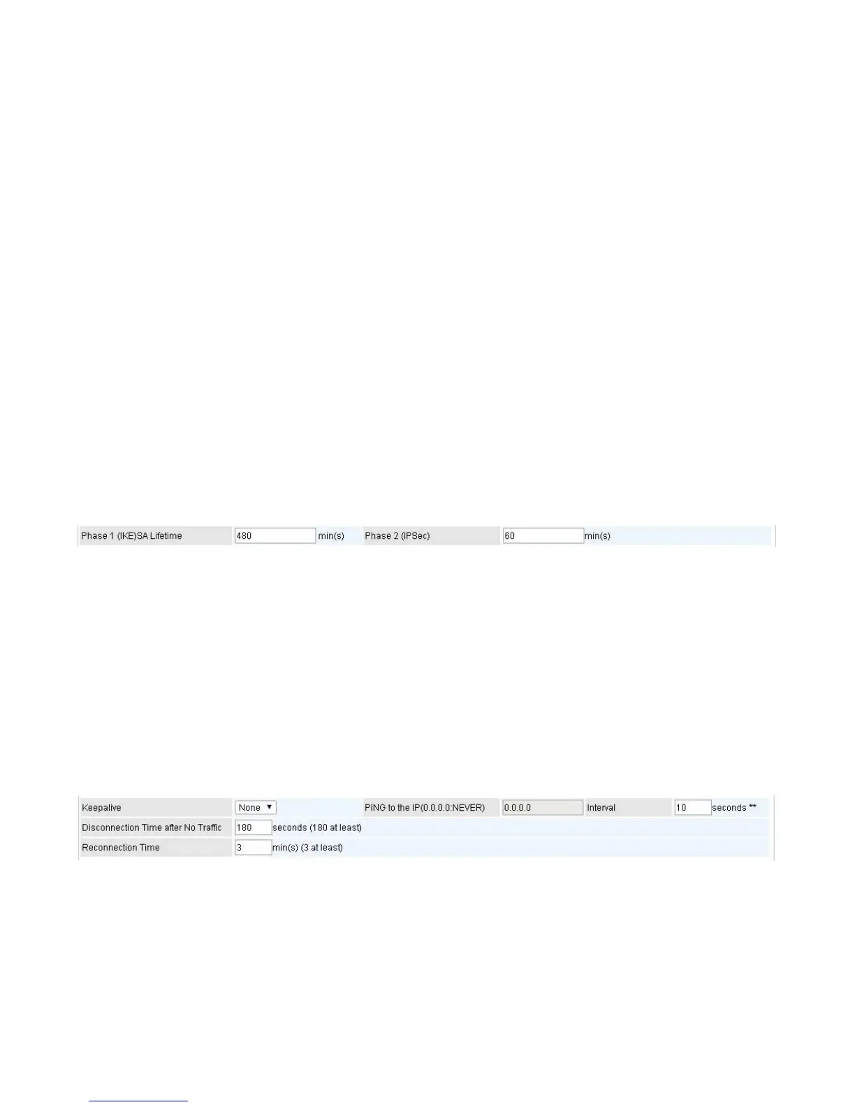 IPSec will be disconnected after the time you set in this function.