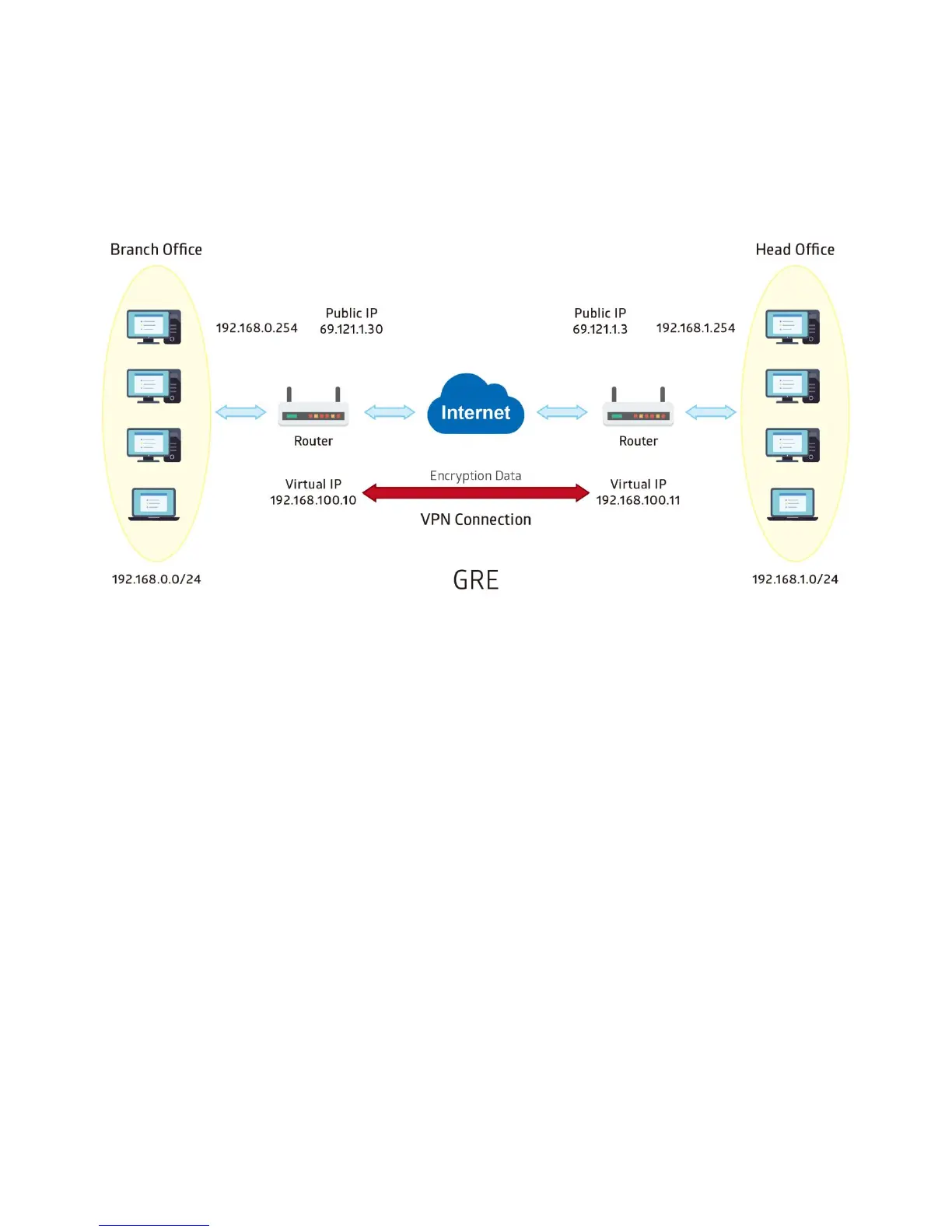 Note: Both office LAN networks must be in different subnets with the GRE VPN connection.