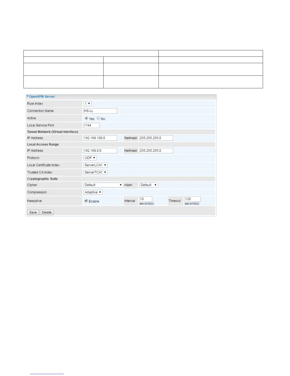 OpenVPN tunnel netwrok virtual interface is 192.168.100.0/24.