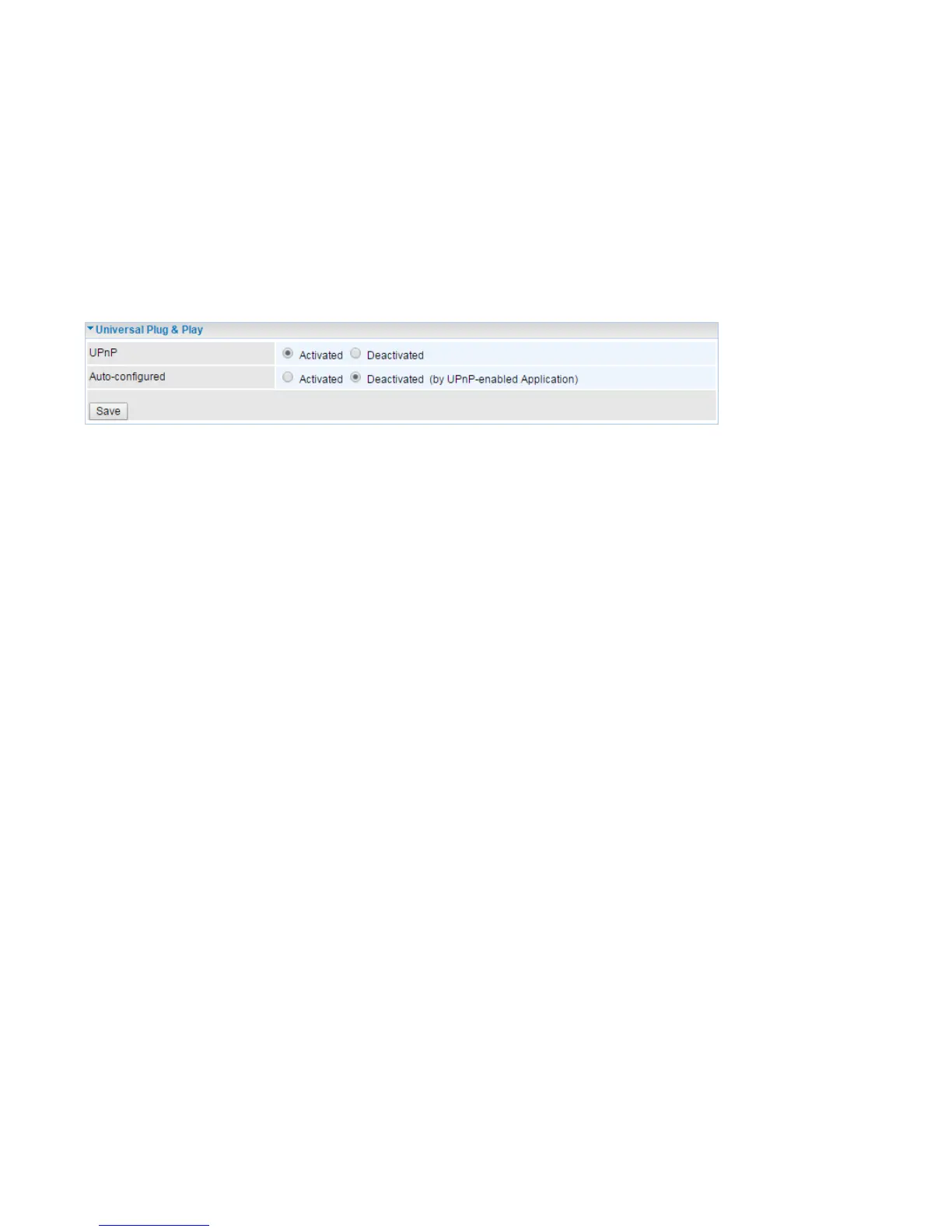 UPnP: Select this checkbox to activate UPnP. Be aware that anyone could use a UPnP application to