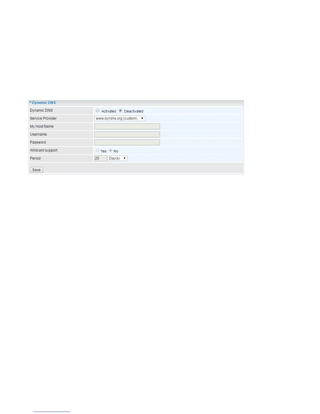 Period: Set the time period between updates, for the Router to exchange information with the DDNS