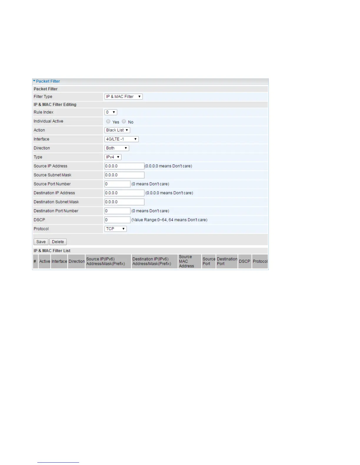 Packet Filter - IP & MAC Filter