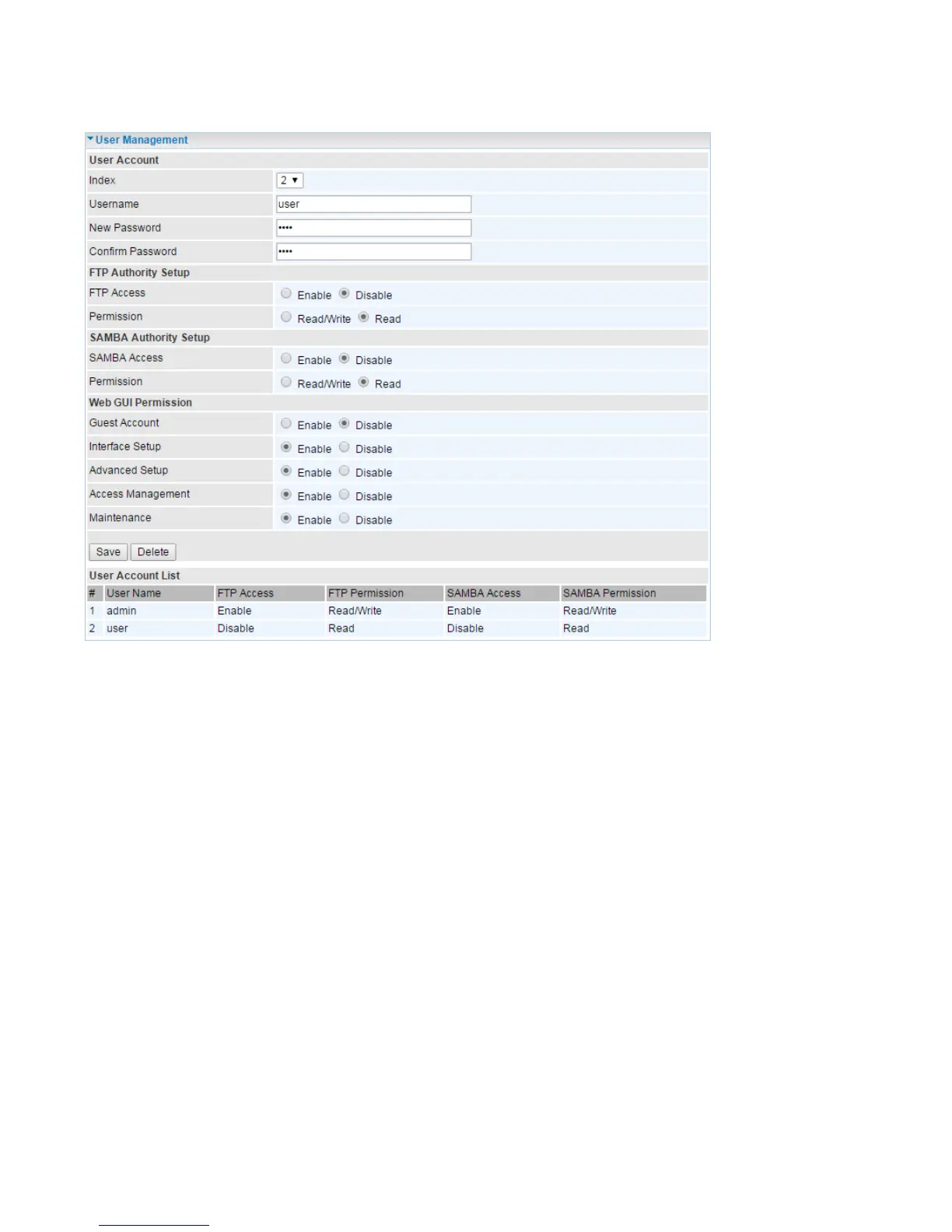 User Name: Users can create account(s) to give it (them) access to SAMBA and FTP.