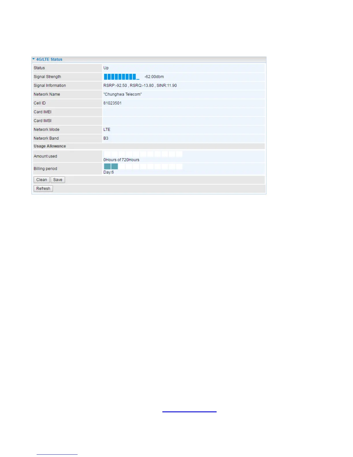Status: The current status of the 4G/LTE connection.