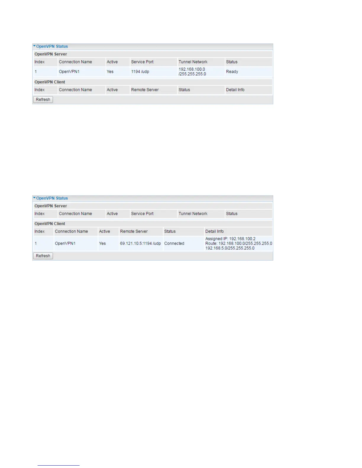 Refresh: Click this button to refresh the connection status.