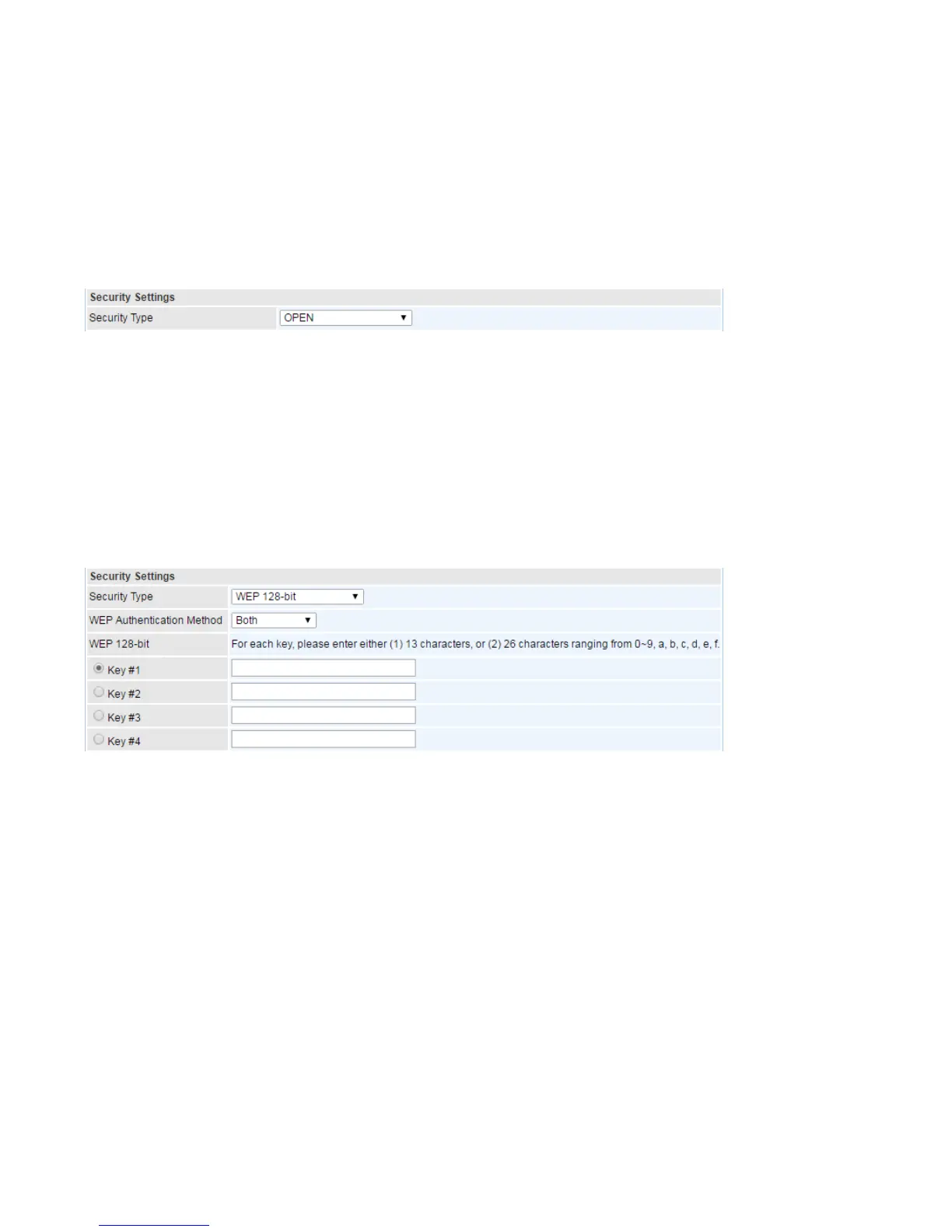 Note: When you enable WPS function, this WEP function will be invalid. And if you select one of