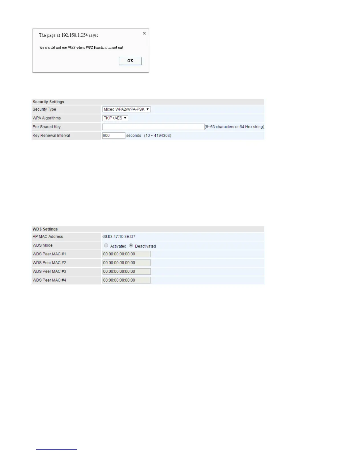 Key Renewal Interval: The time interval for changing the security key automatically between wireless