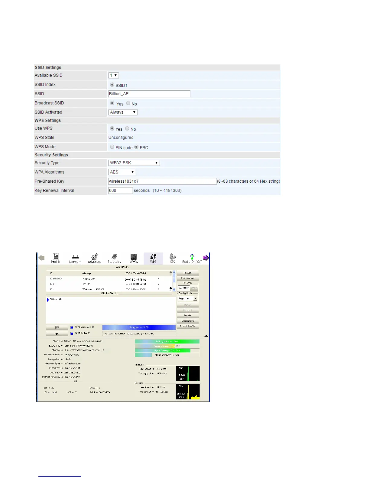 press the WPS button and choose the correct AP (e.g. Billion_AP) from the WPS AP List section