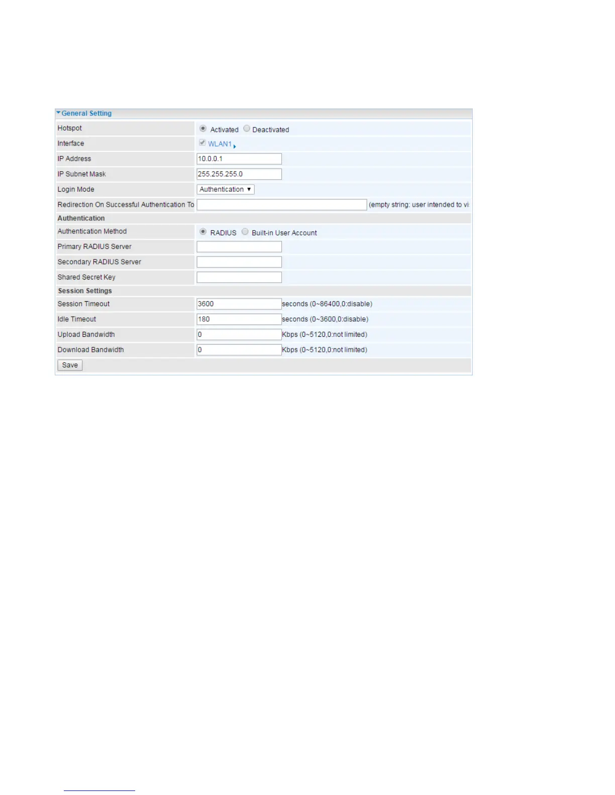 Primary/Secondary RADIUS Server: Specify the primary and secondayr RADIUS server address.