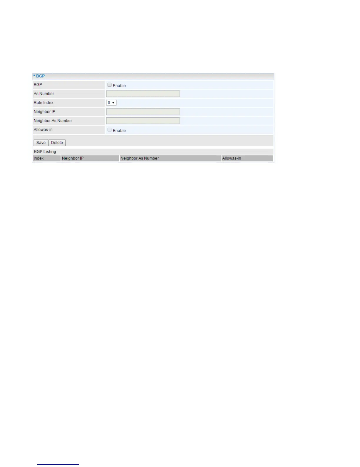 AS Number: Designate the AS number of local router. The AS number is used to identify the IBGP or