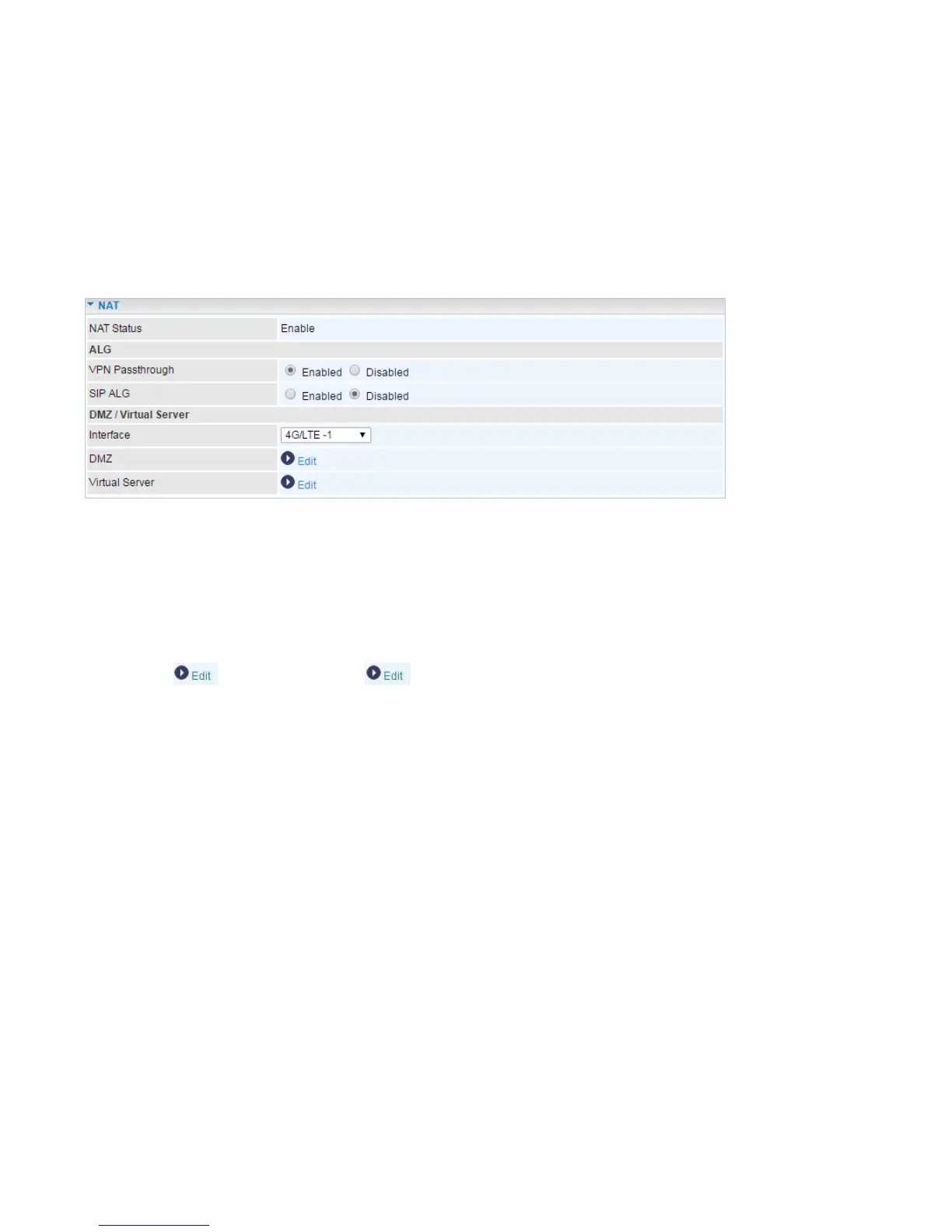 Interface: Select to set DMZ/Virtual Server for “4G/LTE 1”, “4G/LTE 2”, “EWAN” or "Wireless Client".