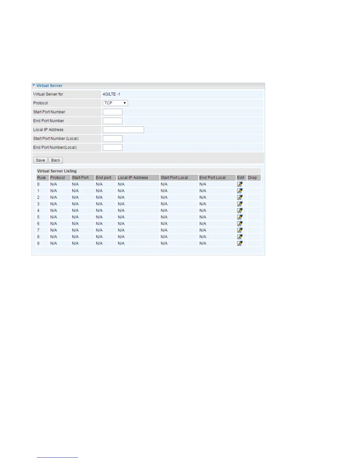 Virtual Server for: Indicate the related WAN interface which allows outside network to connect in and