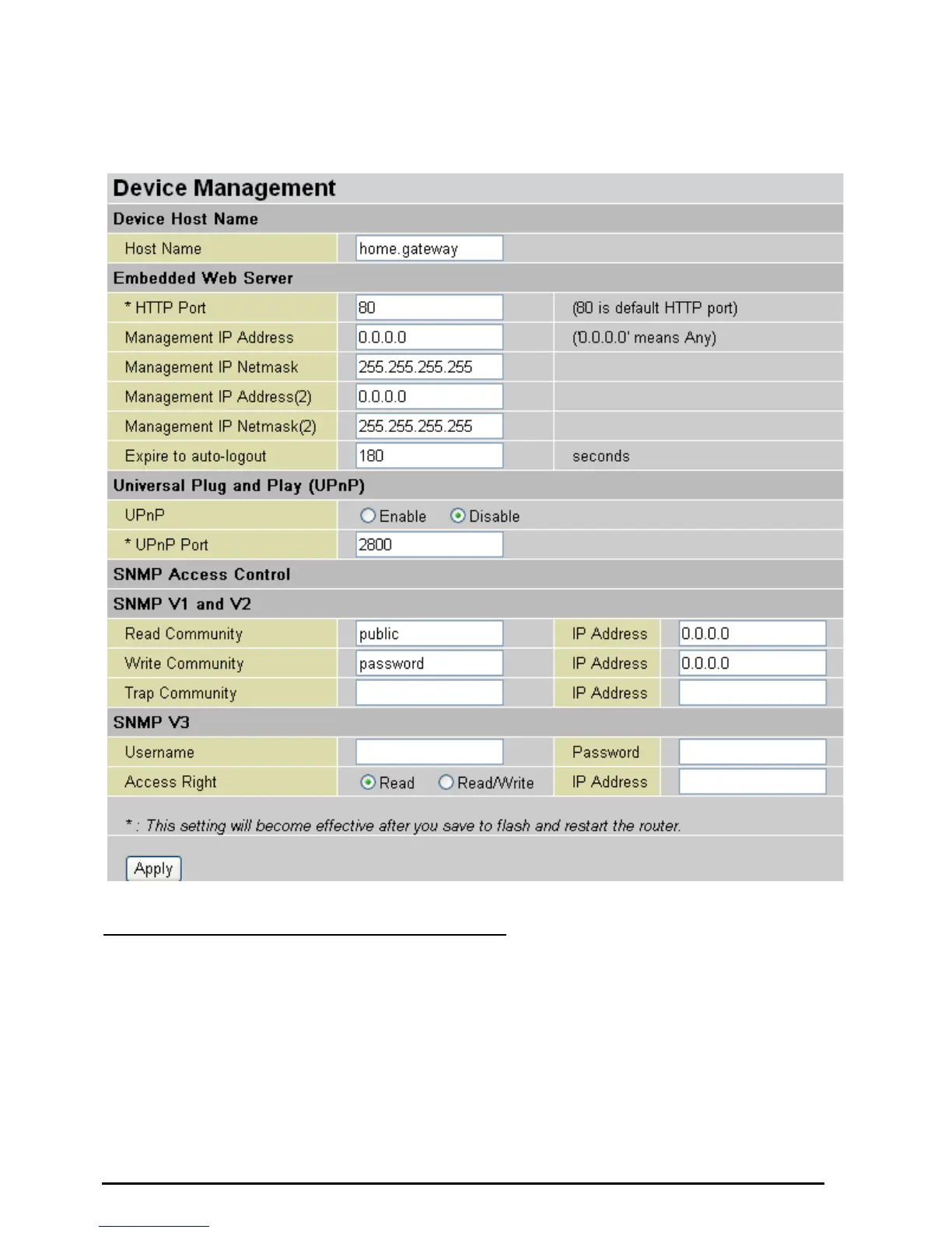 The Device Management advanced configuration settings allow you to control your router’s security