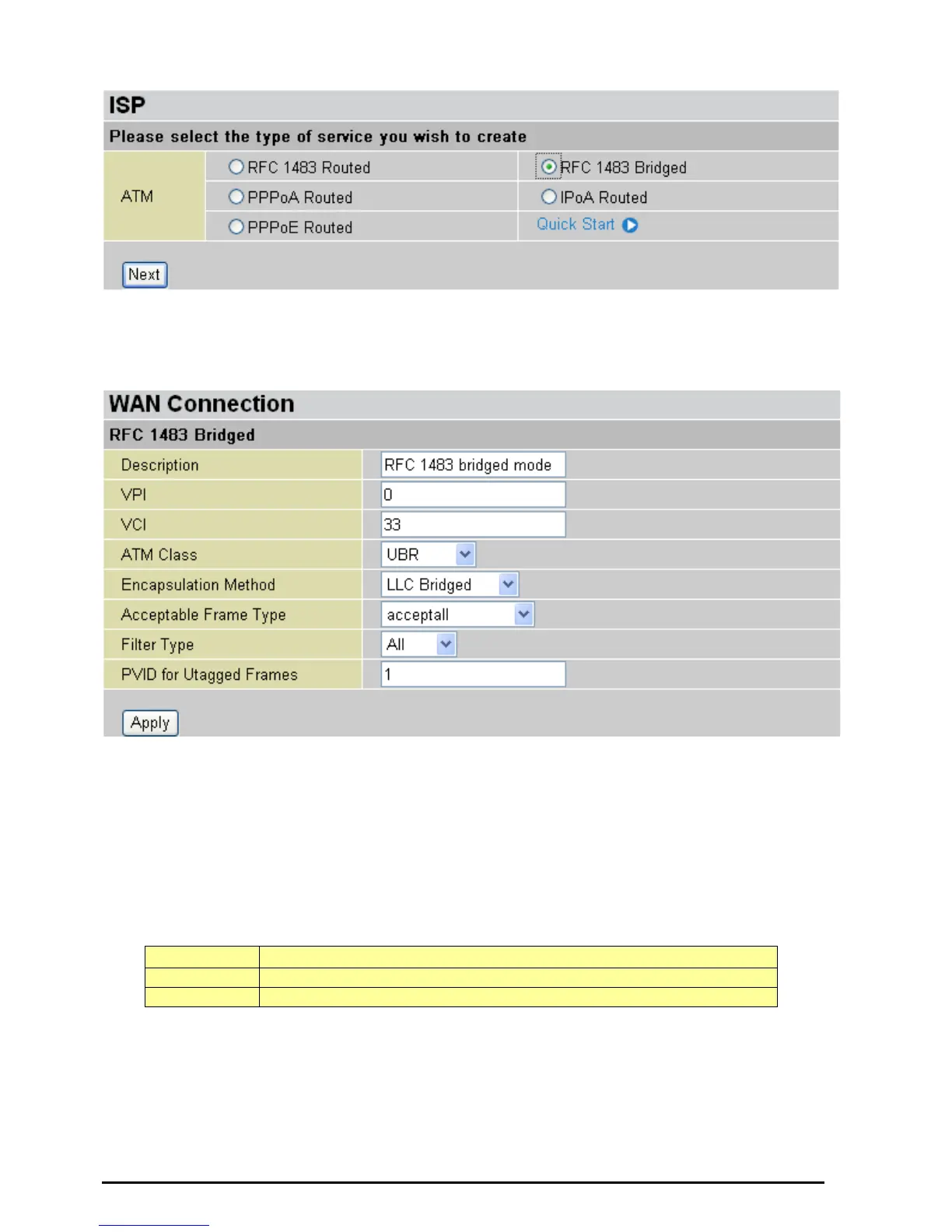 From the example, VPI and VCI only section need to be filled-in and just leave the rest as is. Repeat the