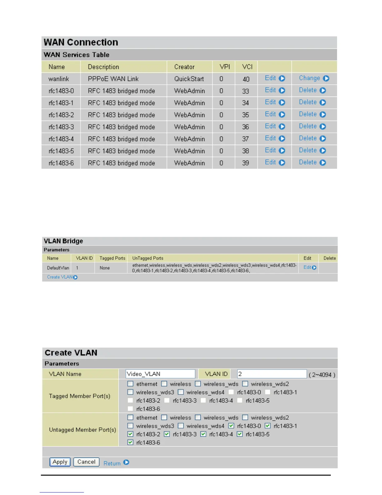 VLAN untagged ports for Video: ethernet1, rfc-1483-0 ~ rfc-1483-6.
