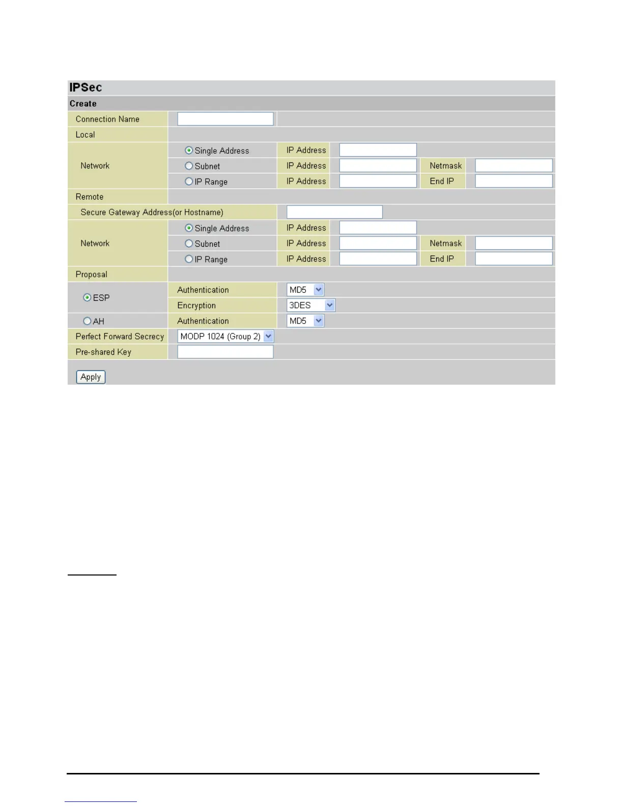 Remote Network: Set the IP address, subnet or address range of the remote network.