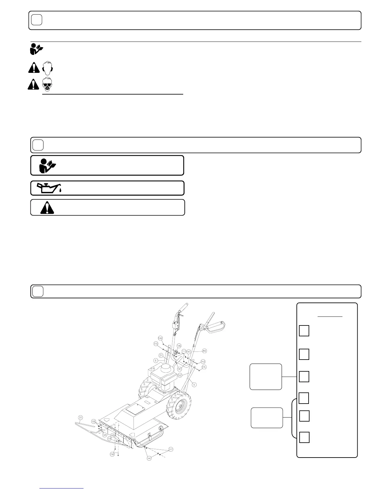 ·DO NOT place hands or feet beneath cutting deck, near