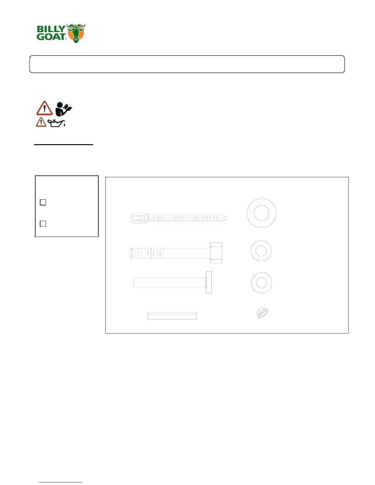 Your Billy Goat Mower is shipped from the factory in one crate, completely assembled except for the