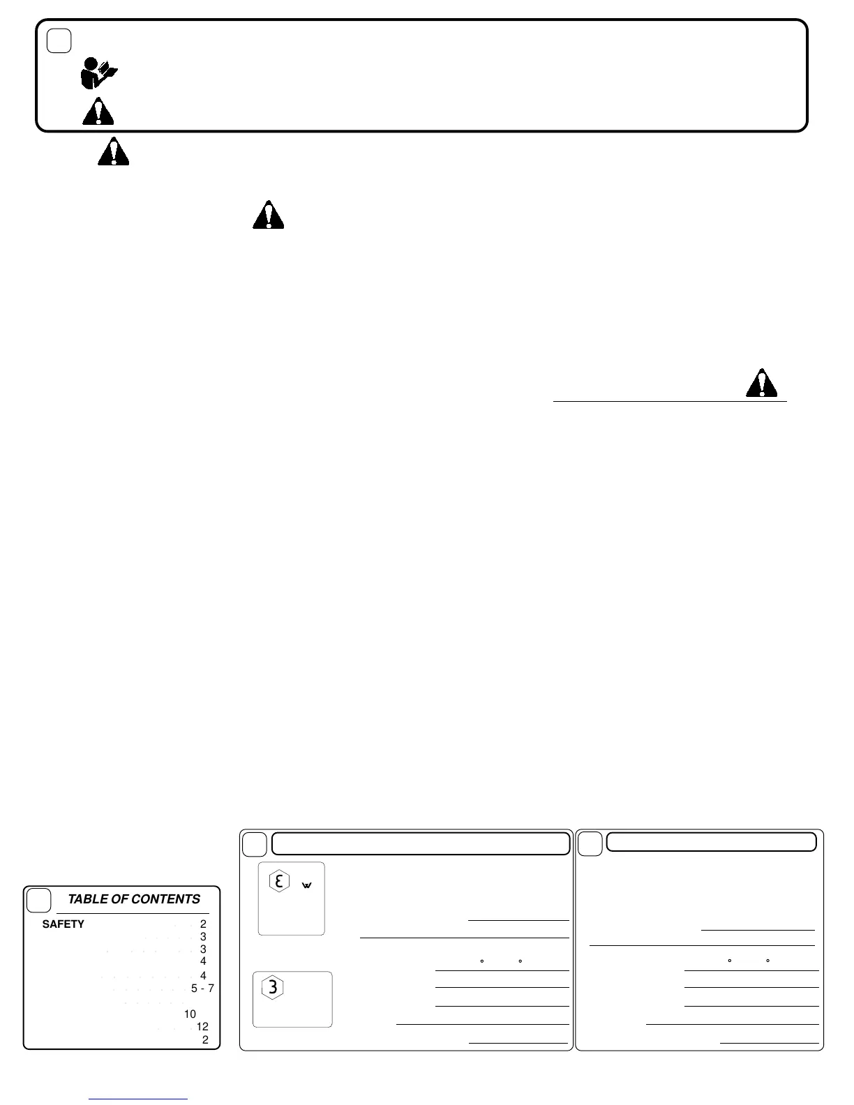 BEFORE STARTING ENGINE, READ AND UNDERSTAND THE “ENTIRE OPERATOR'S MANUAL & EN-